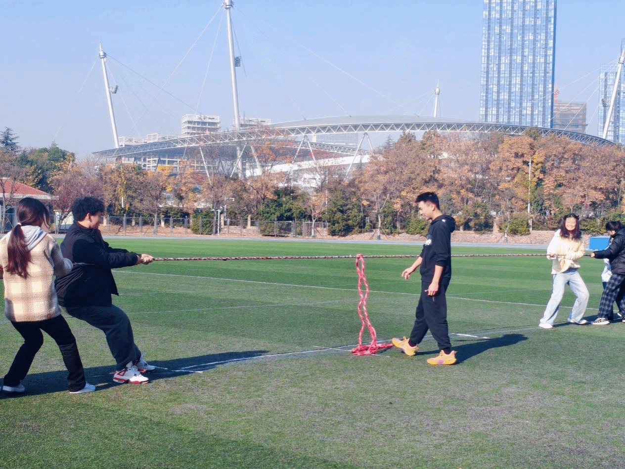本次拔河比赛秉承“友谊第一,比赛第二”的原则,不仅让同学们在绿茵场上尽情挥洒汗水、释放活力,也在欢声笑语中感受到运动带来的轻松与快乐,进一步培养了同学们积极进取、永不言弃的团队合作能力,充分展现出材料学子团结协作、斗志昂扬的青春风采。(撰稿:王梓鸣 审核:王敏)