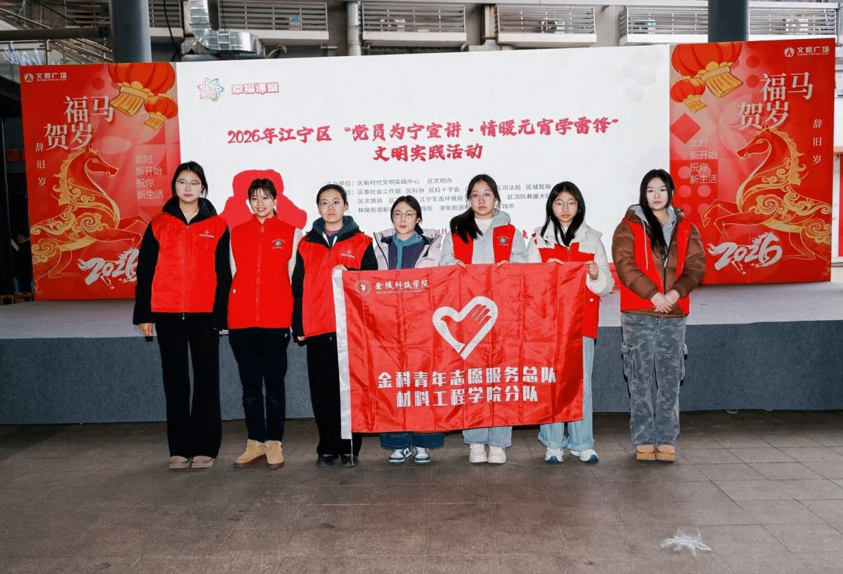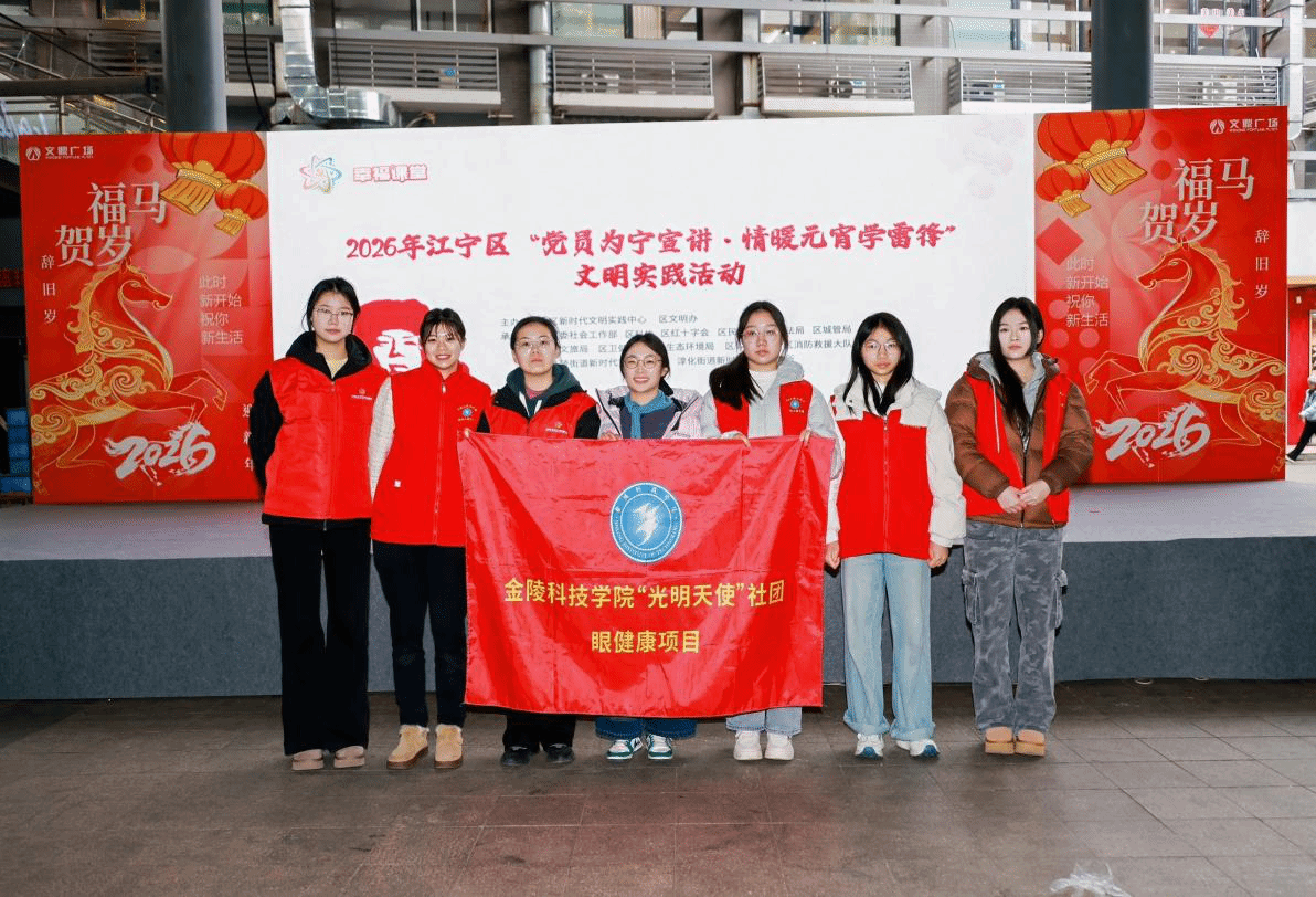 3月3日下午,江宁区文鼎广场举办2026年江宁区“党员为宁宣讲·情暖元宵学雷锋”主题活动,金陵科技学院材料工程学院“光明天使”志愿服务社团受邀参加。该社团以“材艺筑梦”志愿服务队为载体,将专业志愿服务与社会公益服务深度融合,凭借专业的眼健康服务,赢得了现场市民的广泛赞誉。